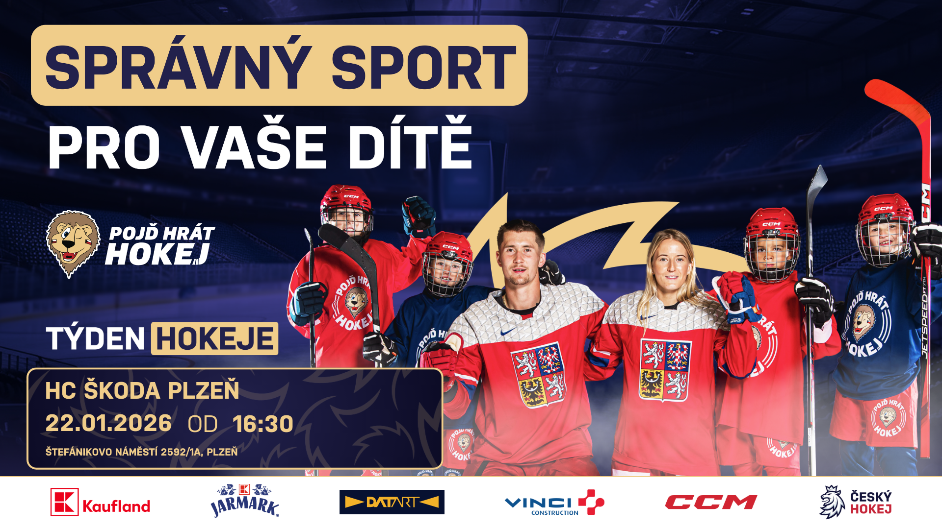 Ve čtvrtek 22. ledna od 16:30 hodin budou mít všechny děti od 4 do 8 let bez rozdílu dovednosti bruslení jedinečnou možnost vyzkoušet si zdarma, jaké to je být hokejistou nebo hokejistkou. HC Škoda Plzeň pořádá ve spolupráci s Českým hokejem na tréninkové hale zimního stadionu v rámci Týdne hokeje náborovou akci. Kromě zážitku v podobě prvních krůčků na ledě si každé dítě navíc s sebou domů odnese zajímavý hokejový dárek. Přijďte si vyzkoušet lední hokej a zažijte spoustu zábavy!