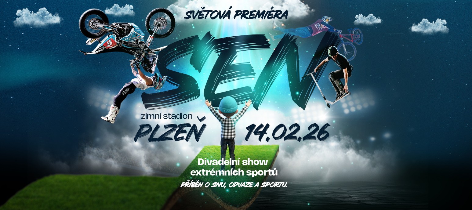Freestyle rodinná show legendárního Libora Podmola míří 14. 2. 2026 na plzeňský zimní stadion — přináší zážitek, jaký u nás dosud nemá obdoby a Plzeň bude prvním městem, které tento světový unikát bude hostit. SEN není jen show. Je to energie, která vtáhne celé publikum. Svět, kde se mladým lidem ukazuje, že sny nejsou fráze, ale motor, který dokáže změnit směr života a přeskočit nejednu překážku. A přesně tohle je poselství celé akce: probudit v dětech odvahu začít, vydržet, růst a věřit si. Ukazuje jim, že každý výkon má svůj začátek, že talent potřebuje odvahu, disciplínu, respekt a zdravý životní styl. A že limity nejsou zeď — jen startovní čára. Poprvé v historii se tak na jednom pódiu spojí hraný motivační příběh s adrenalinovými skoky jezdců, kteří budou létat až 10 metrů vysoko a 25 metrů daleko! Na jednom místě se propojí freestyle koloběžky, BMX, motokros, hudba, divadlo i vizuální show. Vzniká emotivní, strhující a inspirativní podívaná, která zanechá stopu