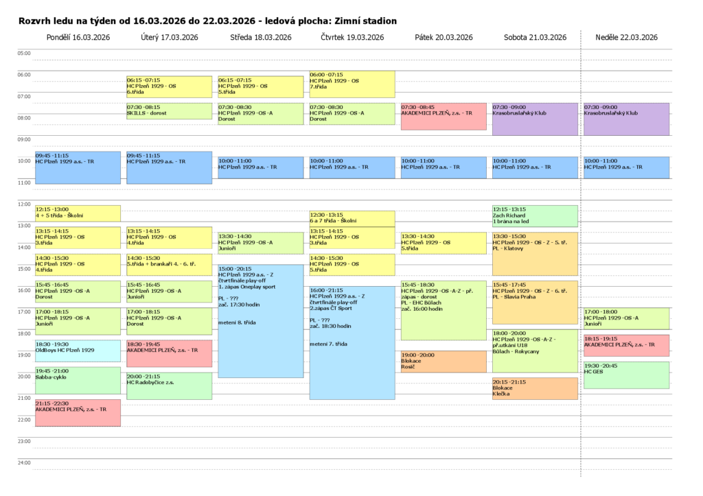 Rozpis ledu na týden od 23. 3. do 29 3. 2026 bude k dispozici zde.