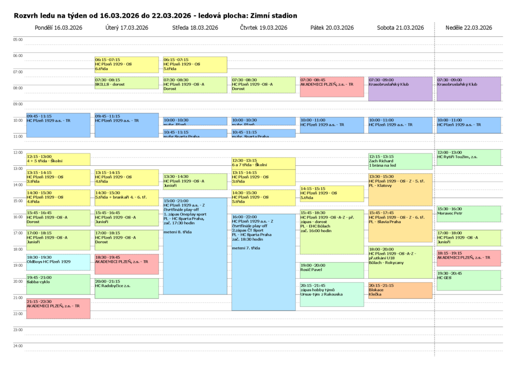 Rozpis ledu na týden od 23. 3. do 29 3. 2026 bude k dispozici zde.